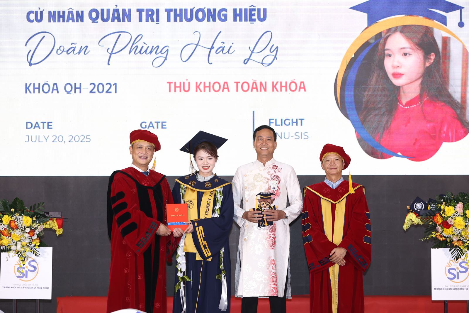 Doãn Phùng Hải Ly, sinh viên khóa QH-2021, ngành Quản trị Thương hiệu – Trường Khoa học liên ngành và Nghệ thuật, ĐHQGHN (VNU-SIS), vừa chính thức được vinh danh trong Chương trình Tuyên dương Thủ khoa các trường đại học trên địa bàn Hà Nội năm 2025. Đây là sự kiện thường niên do UBND Thành phố Hà Nội tổ chức nhằm tôn vinh những sinh viên có thành tích học tập và rèn luyện xuất sắc nhất Thủ đô. Hải Ly là sinh viên tốt nghiệp loại xuất sắc vào tháng 7/2025 vừa qua.