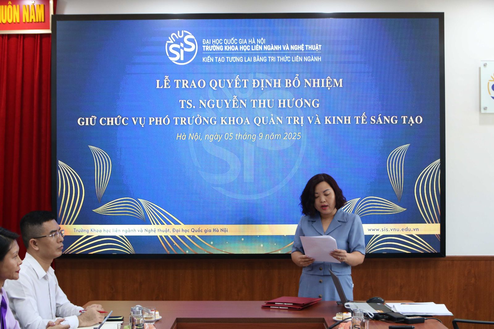 Chiều 5/9/2025, Trường Khoa học liên ngành và Nghệ thuật, Đại học Quốc gia Hà Nội tổ chức Lễ công bố Quyết định bổ nhiệm chức danh Phó Trưởng khoa Quản trị và Kinh tế sáng tạo cho TS. Nguyễn Thu Hương.